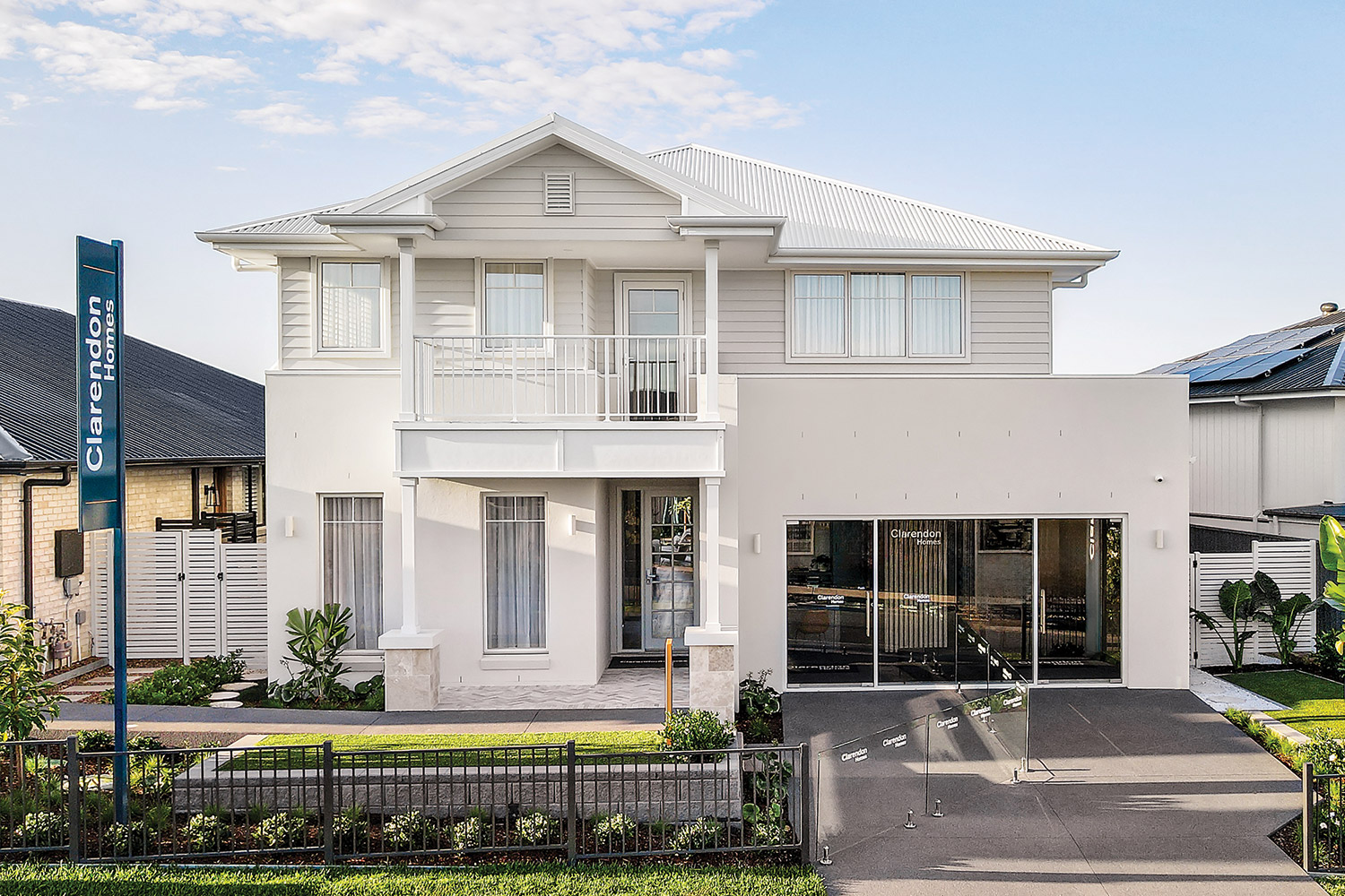 Under a large void that creates drama and volume at the heart of the home is a stunning open-plan kitchen, dining and family area. Continuous white joinery is complemented by chrome fixtures, while glass cabinetry adds an elegant touch. Whether it’s casual family meals or entertaining friends, this space brings everyone together, and the generously proportioned butler’s pantry makes storage and meal preparation a breeze. Walk through the butler’s pantry to the generous laundry with direct access from the double car garage – another family-friendly layout feature courtesy of Clarendon’s clever designers.