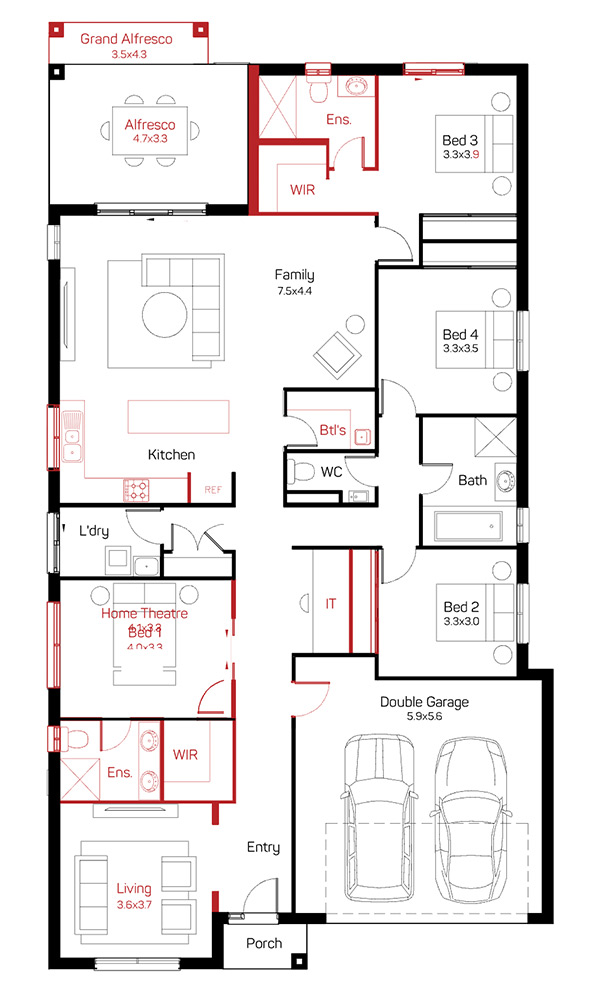 Our Single Storey Louis 26, is part of a wider collection with multiple floorplan sizes and a variety of click on options available; its versatility making it a crowd pleaser with many families! Its well-designed floorplan options show off the innovative use of available spaces. With plenty of living and entertaining space, this home is a dream for those who love to entertain, as well as being a haven for a busy family. With so many click on options available, you can really mould this design to best suit your family needs and want. Its not wonder it been a popular design for so many years!