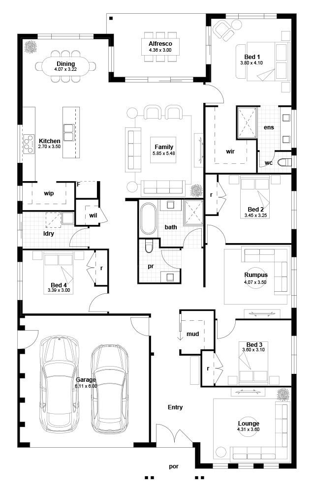 Introducing the Auburn 30, a beautifully designed single-storey home that effortlessly combines luxury and functionality. This home features four spacious bedrooms, including a rear master suite with an ensuite and walk-in robe. The open plan living area, overlooking the rear yard, includes a modern kitchen with a walk-in pantry, a spacious dining area, and a family room that seamlessly flows into the alfresco space, perfect for entertaining. The mudroom, conveniently located near the garage, adds practicality, while the rumpus room is ideally positioned within the kids' zone. This home is perfect for families looking for their dream home.
