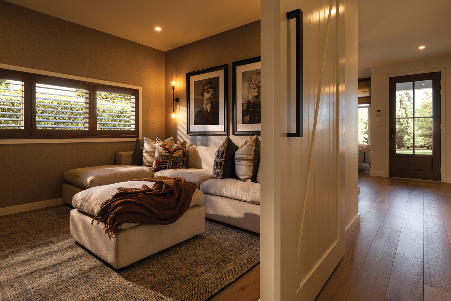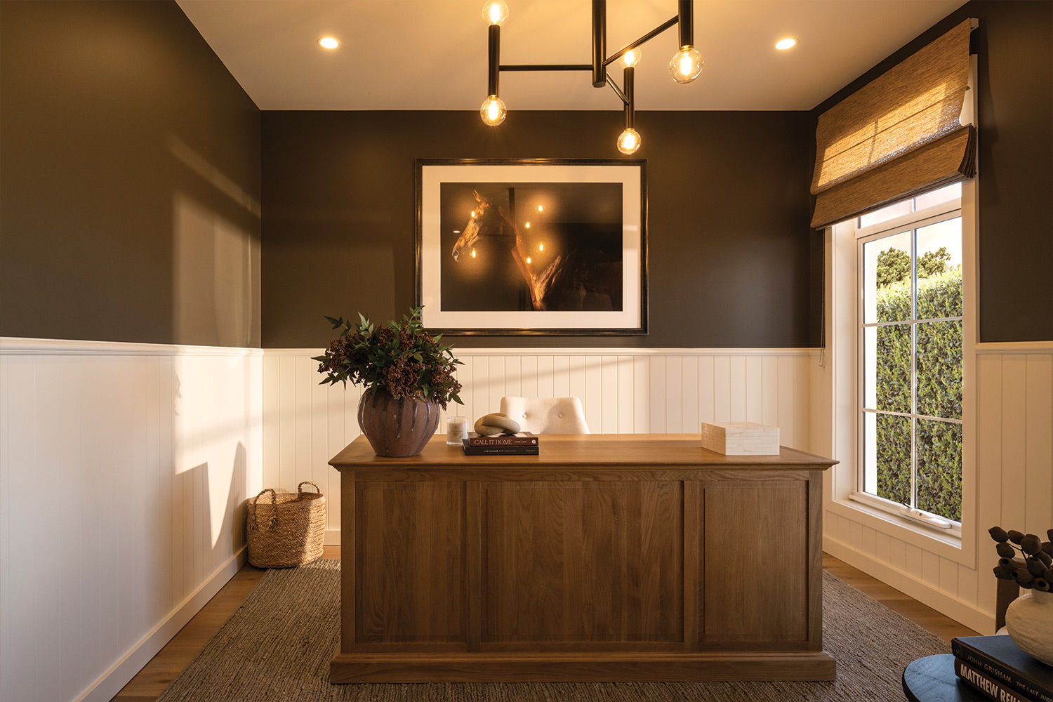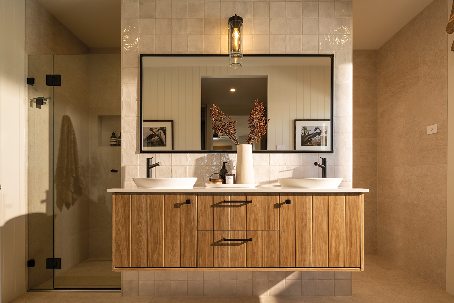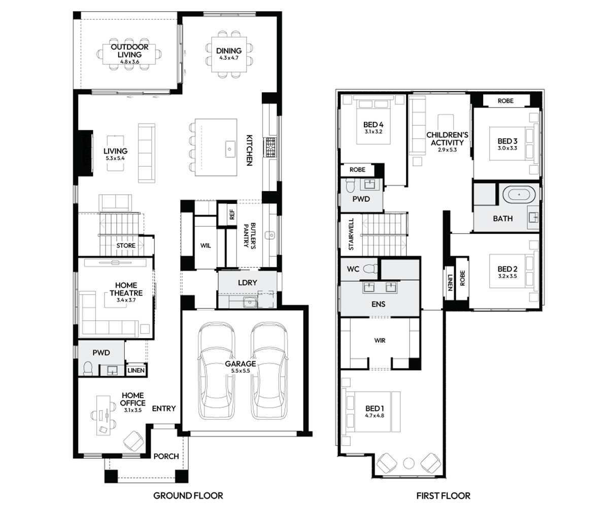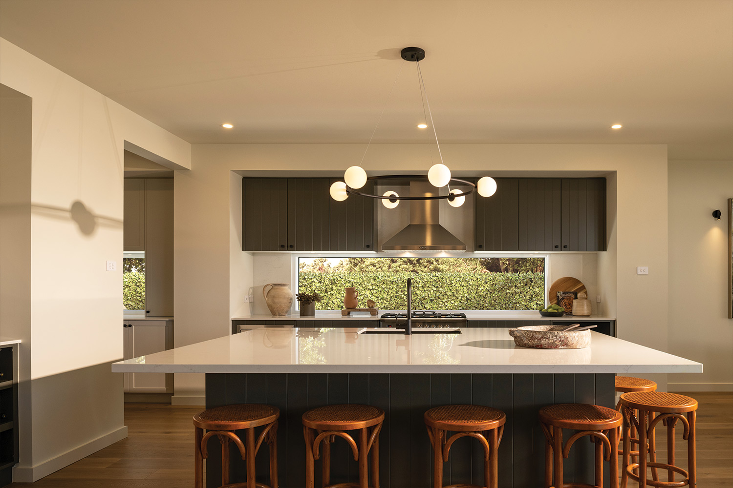 The Brighton 35 is a double storey house design curated for effortless living. The grand size kitchen, marble bench top and wine bar area with a built-in integrated wine fridge add a sophisticated touch to the kitchen area. The extra-large kitchen island bench and butler’s pantry have a contrasting light tone shaker door profile providing ample storage and prep bench space. This home is an entertainers dream with kitchen, dining, alfresco and living room all connecting, while a built in fireplace creates a stunning atmosphere for those chilly evenings. Upstairs, the luxurious main bedroom is complemented by three additional bedrooms, bathroom and children’s activities. Large windows allow for the warmth of the sunshine to filter through, really making these this home a family entertainers delight.