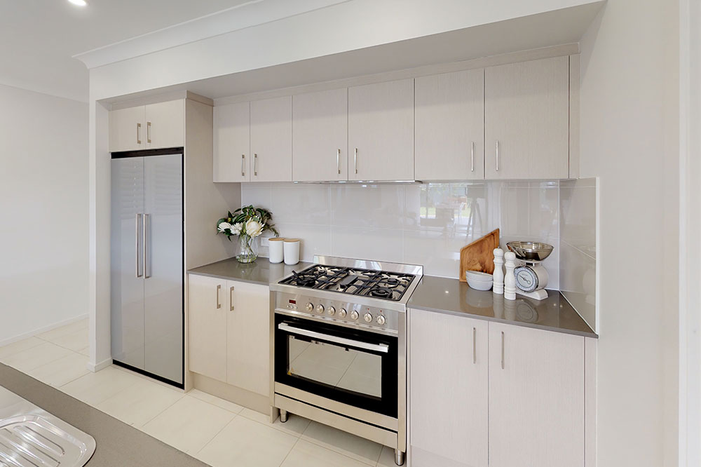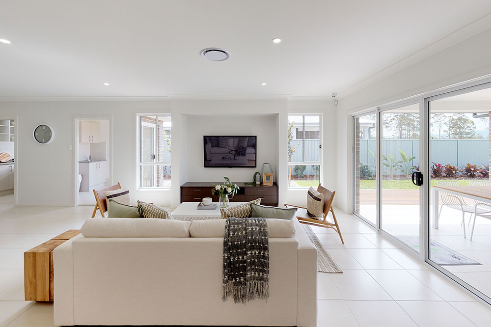 A modern Sydney home is epitomised by an inviting open plan living and dining area that flows into an alfresco space. As this home is based on the design for our Iluka 4.1 floor plan, it also boasts a large kitchen close to the dining area, complete with breakfast bench for prep or gathering.