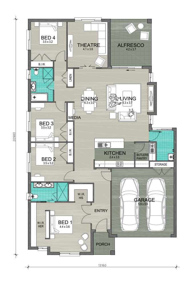 4 bedrooms make this the perfect home for a big or growing family, with each room enjoying built-in wardrobes and large windows for plenty of Sydney sunshine. The master bedroom offers a walk-in wardrobe and an ensuite bathroom. To bring the family together, there is a home theatre just off the living room, but separate from the open living spaces. You’ve also got a separate laundry and a double garage.