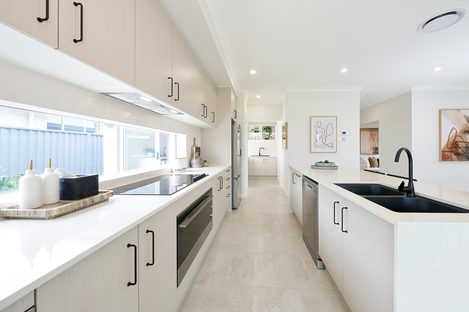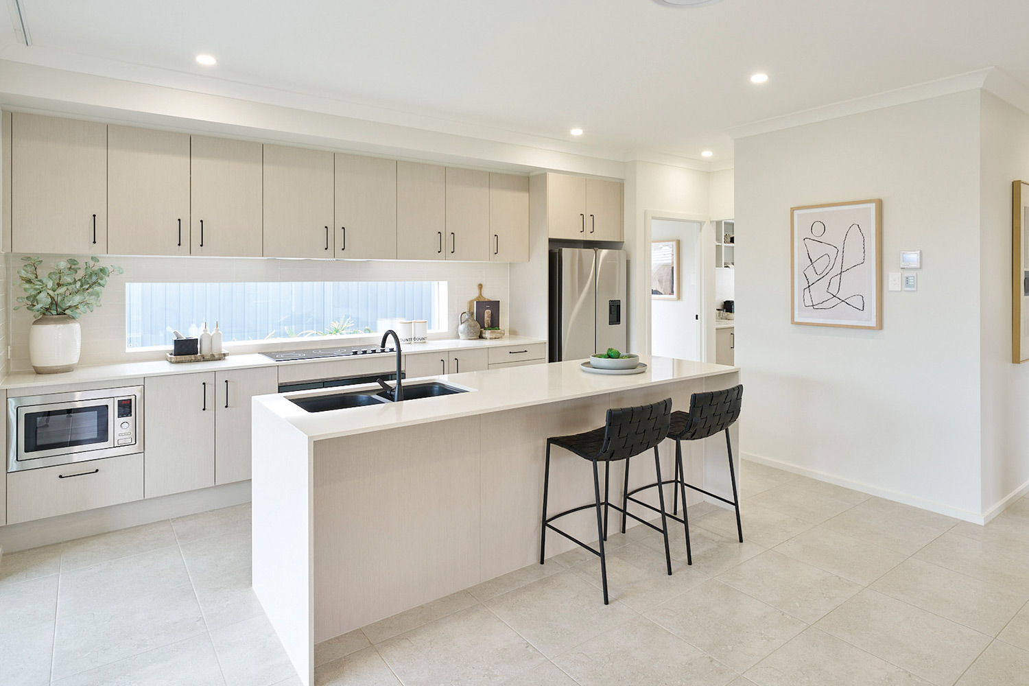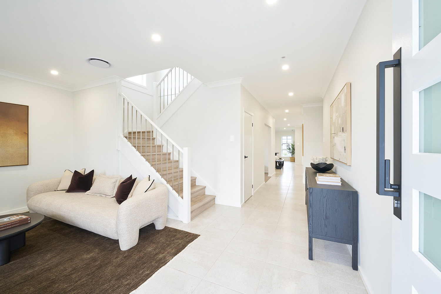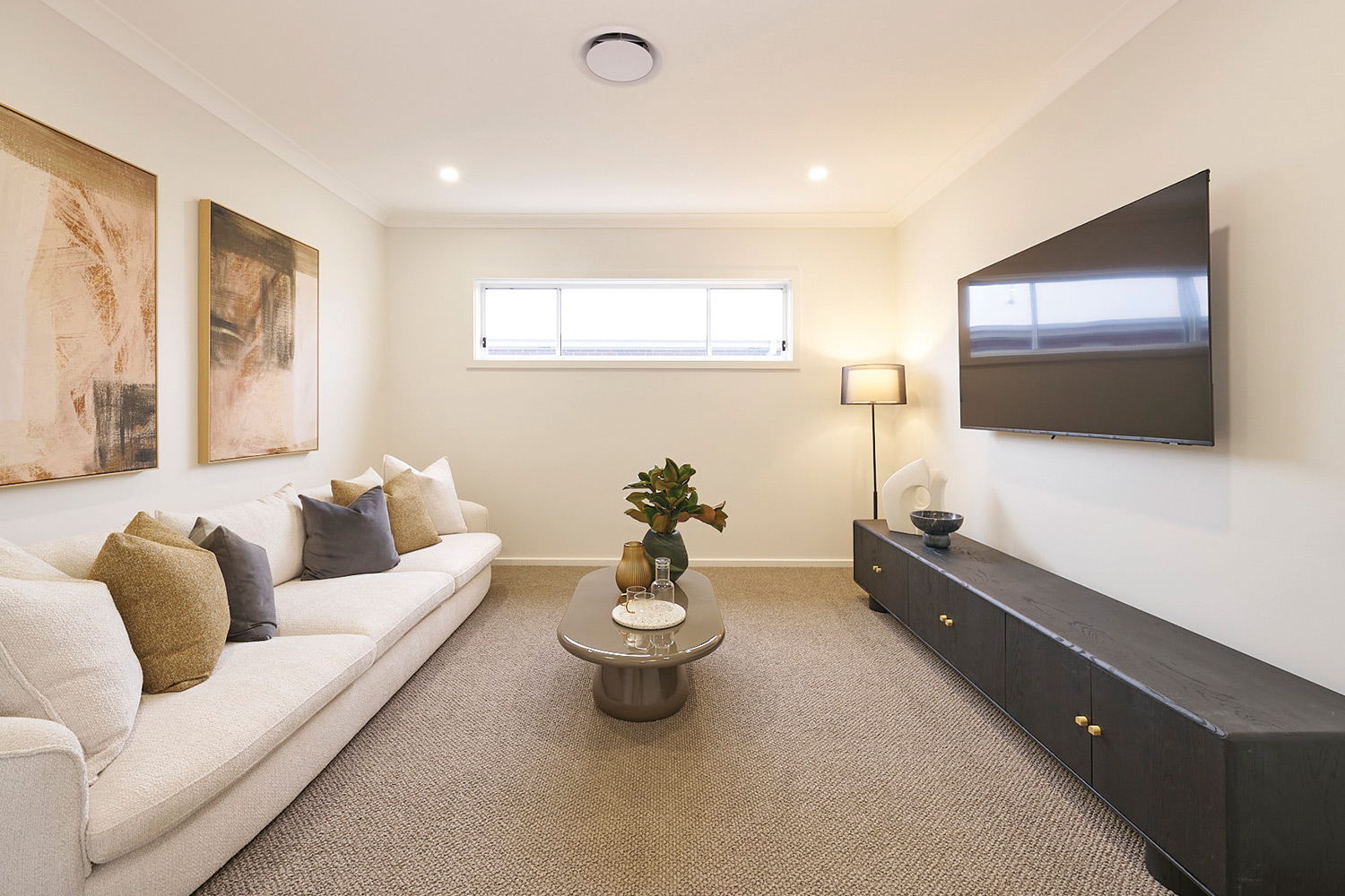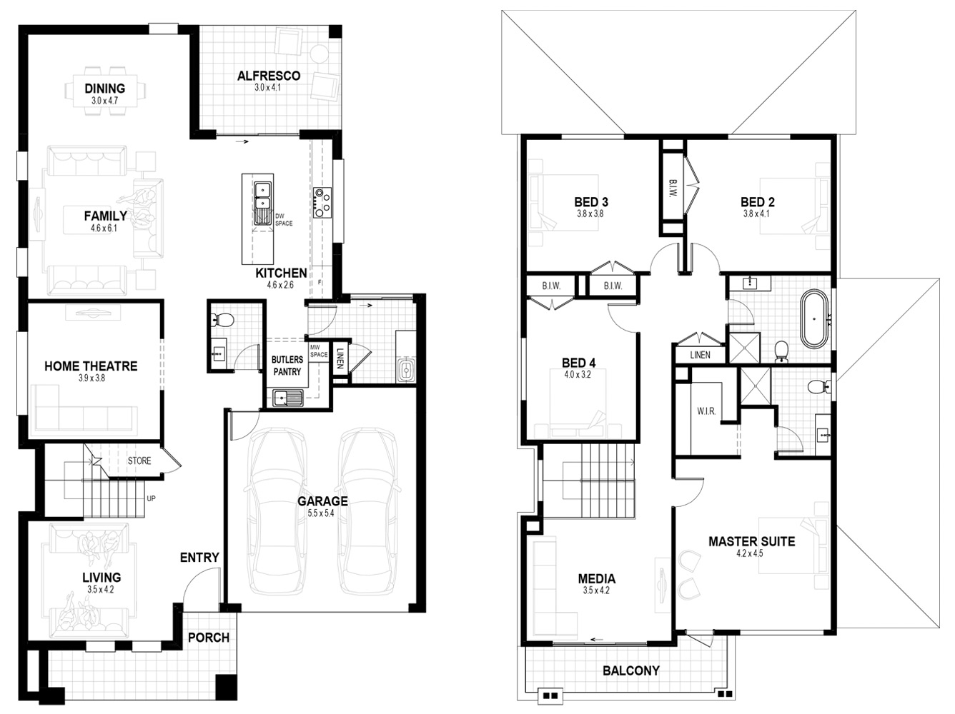 Downstairs is designed for both everyday living and entertaining. A separate living room at the front of the home provides a quiet place to relax, while a dedicated home theatre creates the ultimate movie-night experience. At the rear, the open-plan kitchen, dining and family area forms the heart of the home, flowing seamlessly to the included alfresco for easy indoor-outdoor living. The large kitchen features a butler’s pantry for extra storage and preparation space, while a generous laundry and convenient powder room complete the highly functional ground floor.